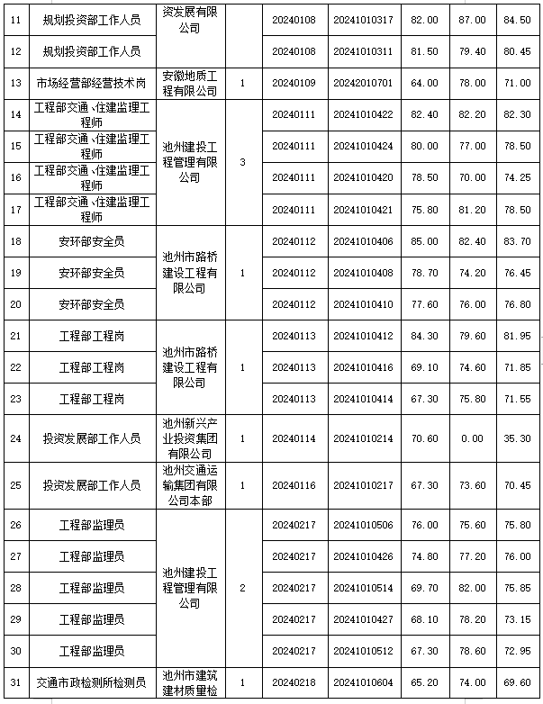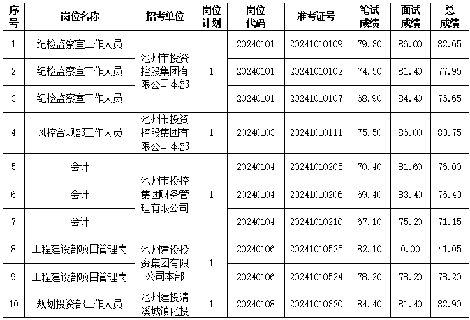 根據(jù)《池州市投資控股集團2024年下半年公開招聘工作人員公告》要求,下半年公開招聘面試工作已結(jié)束,現(xiàn)將相關(guān)事宜公告如下。