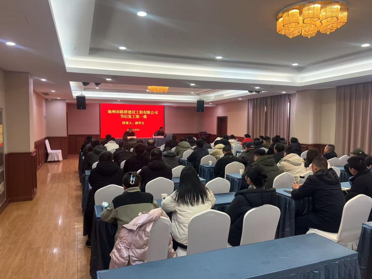 2月9日下午,市路橋公司組織全體職工舉辦了2025年春節(jié)“節(jié)后復(fù)工第一課”講座,進(jìn)一步做好節(jié)后復(fù)工復(fù)產(chǎn)安全生產(chǎn)工作,強(qiáng)化落實(shí)安全生產(chǎn)主體責(zé)任,用心用情上好“安全第一課”,助力復(fù)工復(fù)產(chǎn)。講座以增強(qiáng)員工安全生產(chǎn)意識(shí)、落實(shí)企業(yè)安全生產(chǎn)責(zé)任以及風(fēng)險(xiǎn)排查及防范為主要內(nèi)容,通過(guò)抓牢責(zé)任分解、抓深安全工作部署、抓嚴(yán)復(fù)工核準(zhǔn)、嚴(yán)格把好開(kāi)工人員準(zhǔn)入關(guān)、認(rèn)真開(kāi)展安全風(fēng)險(xiǎn)識(shí)別與分級(jí)管控、組織安全隱患全面深入排查、夯實(shí)應(yīng)急管理工作等方面深入講授,用大量案例引導(dǎo)企業(yè)切實(shí)做好復(fù)工復(fù)產(chǎn)安全生產(chǎn)工作,重點(diǎn)強(qiáng)調(diào)先安全后生產(chǎn)。“復(fù)工第一課”既是一次警示教育的安全會(huì),也是一次調(diào)整狀態(tài)的收心會(huì),市路橋公司將以此次“復(fù)工第一課”講座為契機(jī),持續(xù)強(qiáng)化公司安全生產(chǎn)教育,強(qiáng)化全體職工的安全意識(shí),提升安全生產(chǎn)管理水平,防范安全生產(chǎn)事故發(fā)生。