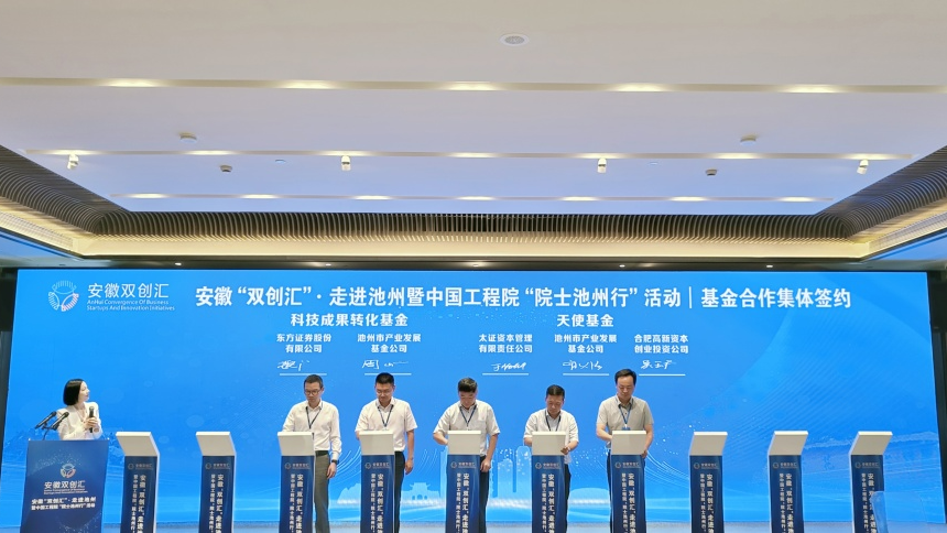 開幕式上首個(gè)重大項(xiàng)目——池州市產(chǎn)業(yè)基金公司與東方證券、太證資本和合高資本進(jìn)行基金合作簽約。本次簽約的池州科技成果轉(zhuǎn)化基金是近年來池州市首支與省母基金合作的基金項(xiàng)目,同時(shí)池州太證合高股權(quán)投資合伙企業(yè)(有限合伙)(暫定)是池州市首支天使基金。