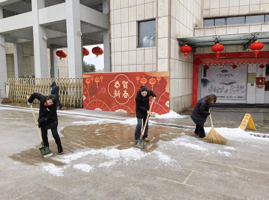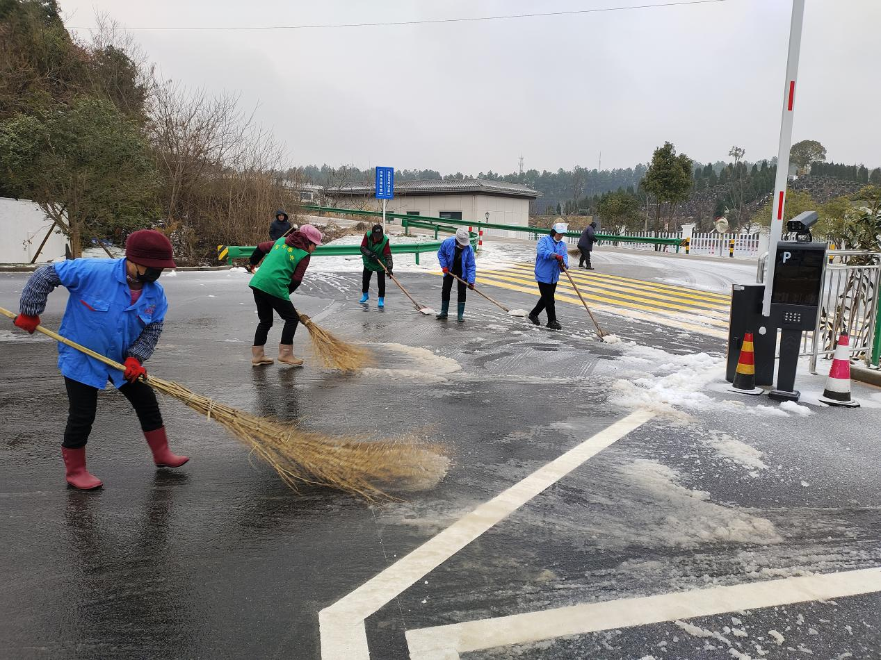 公司組織全體員工迅速投入掃雪除冰行動(dòng),安排專人在001縣道小沖口下坡段多次拋灑融雪劑,重點(diǎn)對(duì)坡道路面加強(qiáng)清雪除冰工作。全體干部職工,按照下雪應(yīng)急預(yù)案提前劃分好區(qū)域,對(duì)各區(qū)域道路的積雪進(jìn)行清掃。經(jīng)過奮力清雪除冰,通往園區(qū)和館內(nèi)道路積雪積冰情況得到有效緩解。