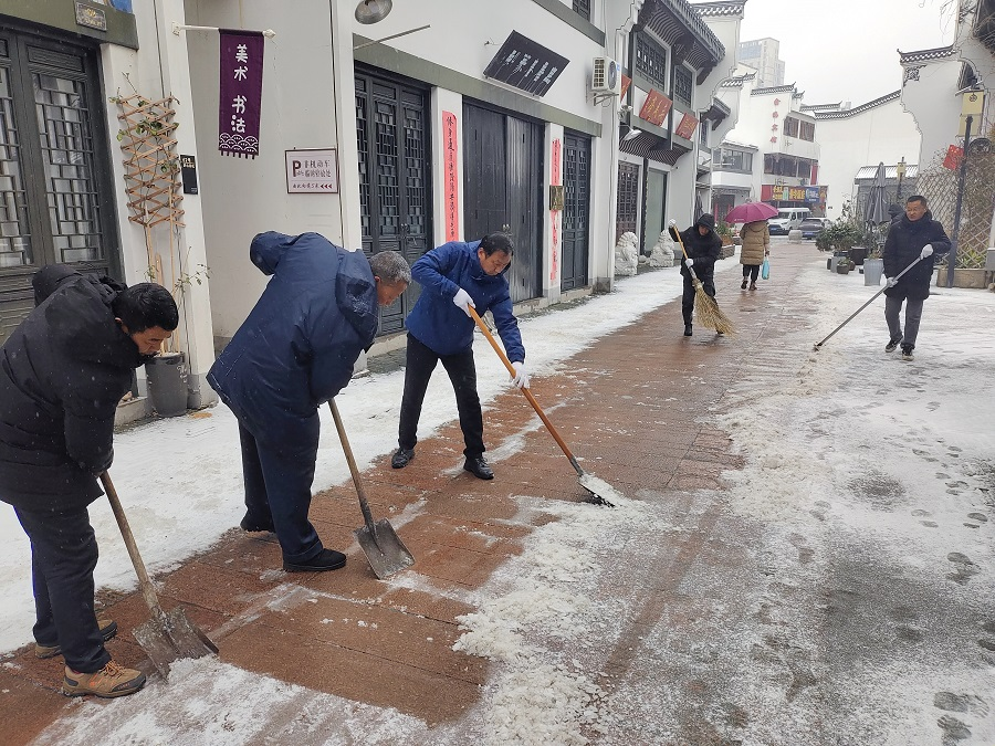 2月23日上午,孝肅街公司第一時(shí)間組織黨員和職工紛紛走上街區(qū)開展掃雪除冰活動(dòng)。寒風(fēng)陣陣,并沒有阻擋支部黨員干部和職工掃雪除冰的熱情。經(jīng)過2個(gè)多小時(shí)連續(xù)的奮力清掃,將街區(qū)人行道積雪打掃干凈,讓街區(qū)道路變得安全暢通,為市民群眾的安全出行帶來了便捷,更是傳遞了一份溫暖和正能量。