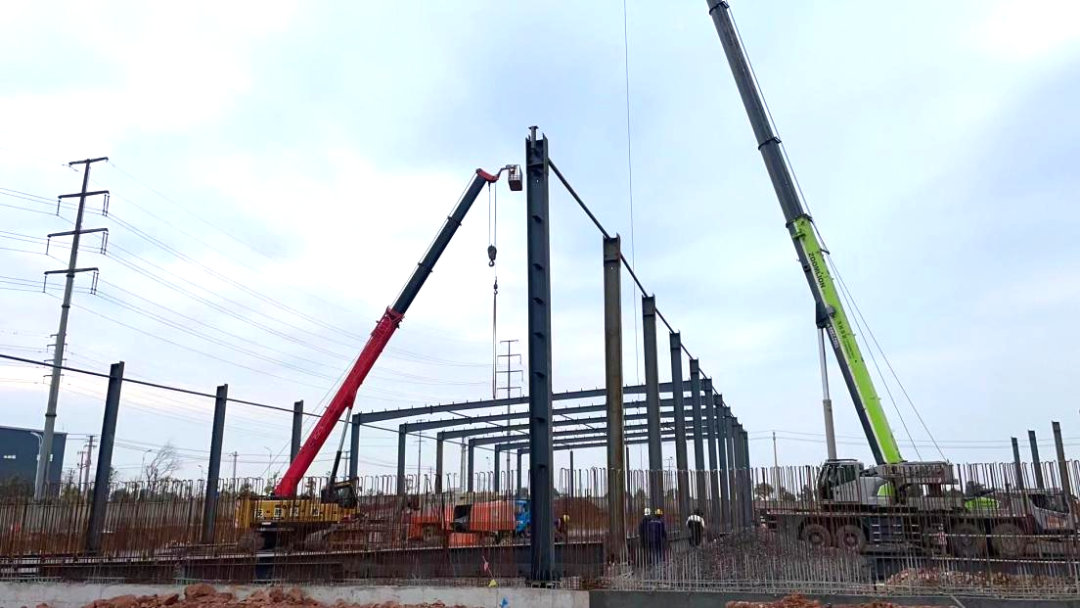 公用型保稅倉庫項(xiàng)目于2023年12月初正式開工建設(shè),項(xiàng)目建成后主要提供各種有色金屬及大宗散貨礦產(chǎn)品的倉儲,報關(guān),報檢,報稅及物流配送等服務(wù)。復(fù)工以來,全體工作人員精神飽滿,拿出了開工即決戰(zhàn)、起步即沖刺的精神狀態(tài)投入到項(xiàng)目施工中。目前保稅倉庫鋼結(jié)構(gòu)鋼柱鋼梁已搭設(shè)完成,其附屬設(shè)施中制樣間、地磅棚、沉淀池基礎(chǔ)筏板等基礎(chǔ)設(shè)施已基本完成。商發(fā)公司將掛圖作戰(zhàn)、打表推進(jìn)公用型保稅倉庫項(xiàng)目建設(shè),確保項(xiàng)目早建成、早投運(yùn)、早見效。